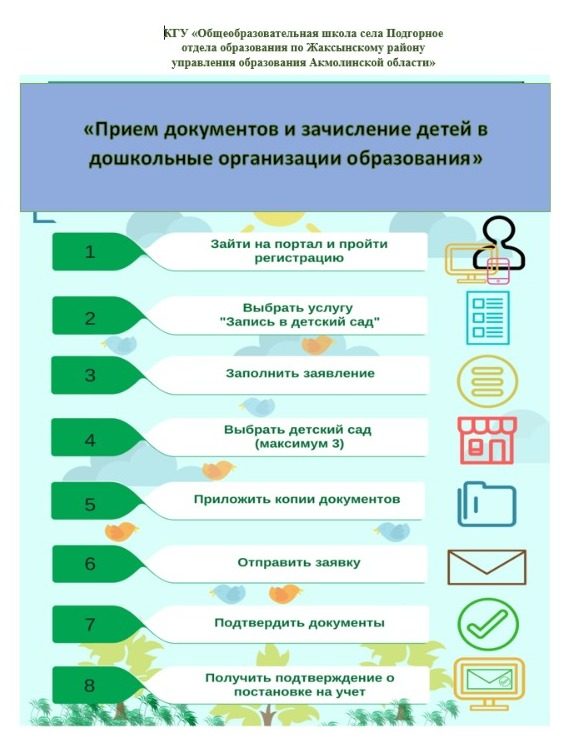 "Мектепке дейінгі білім беру ұйымдарына құжаттарды қабылдау және балаларды қабылдау"