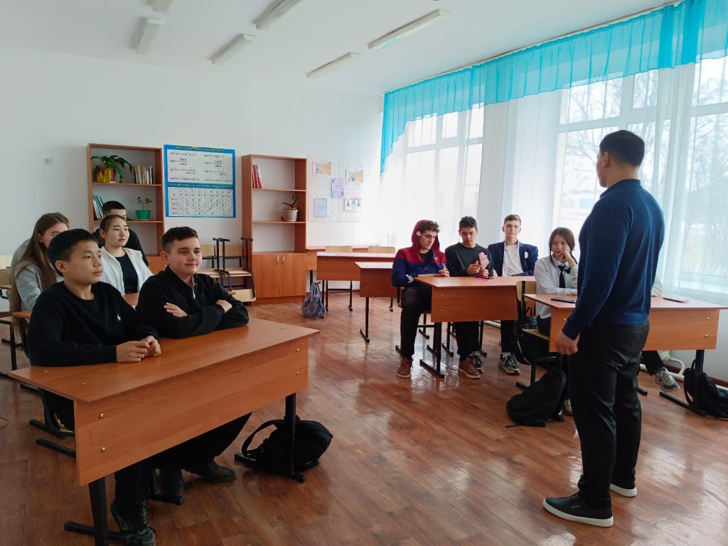 "Мектептегі зорлық-зомбылықтың алдын алу" тақырыбында аға буын оқушылары арасында дәріс. Жауапты: әлеуметтік педагог А. М. Жолдыбаев