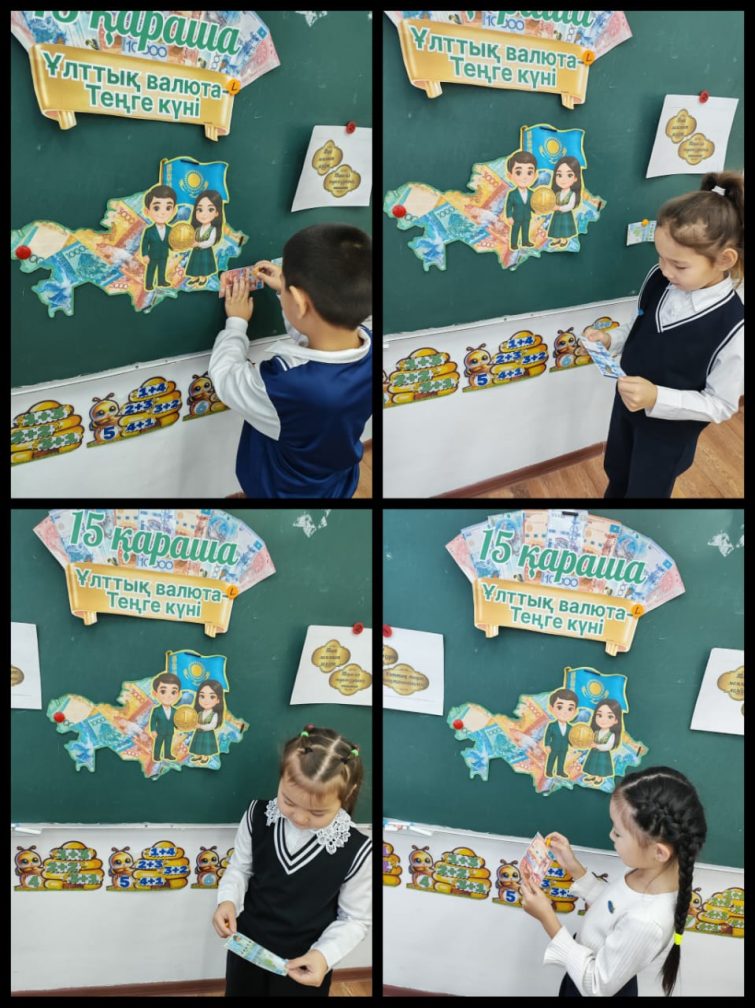 15 қараша - Қазақстан Республикасының Ұлттық валюта күні қарсаңында біздің мектептің барлық сыныптарында бірыңғай сынып сағаты өтті.