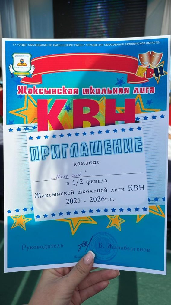 9 қаңтарда біздің мектептің КВН командасы Жақсы мектеп лигасына қатысып, ½ финалға өтті.